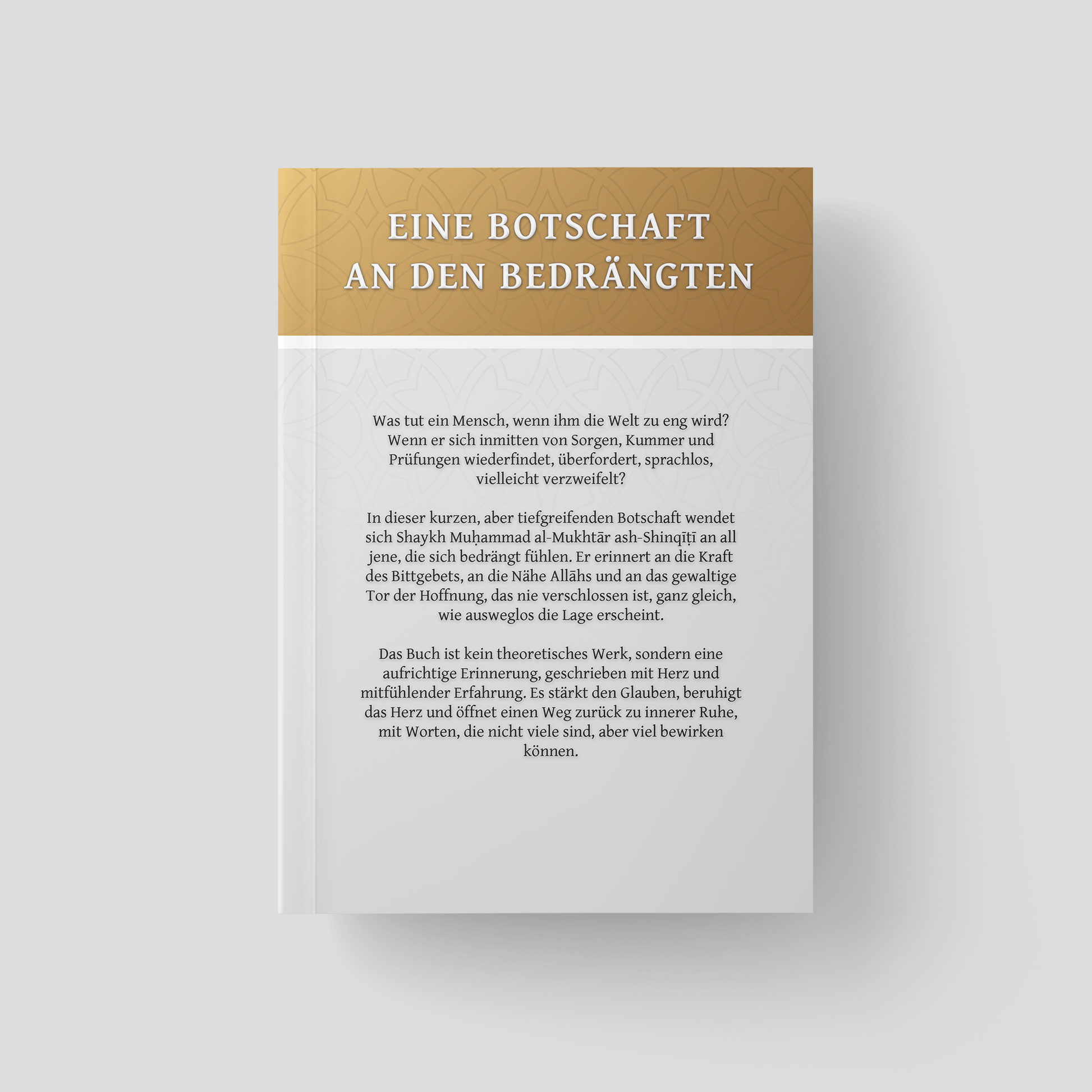 Fühlst du dich manchmal überfordert, sprachlos oder von Sorgen und Kummer erdrückt? „Botschaft an den Bedrängten“ ist ein besonderes Buch für genau solche Momente. In klaren, einfühlsamen Worten richtet sich Shaykh Muḥammad al-Mukhtār ash-Shinqīṭī an alle, die Trost und Hoffnung suchen.